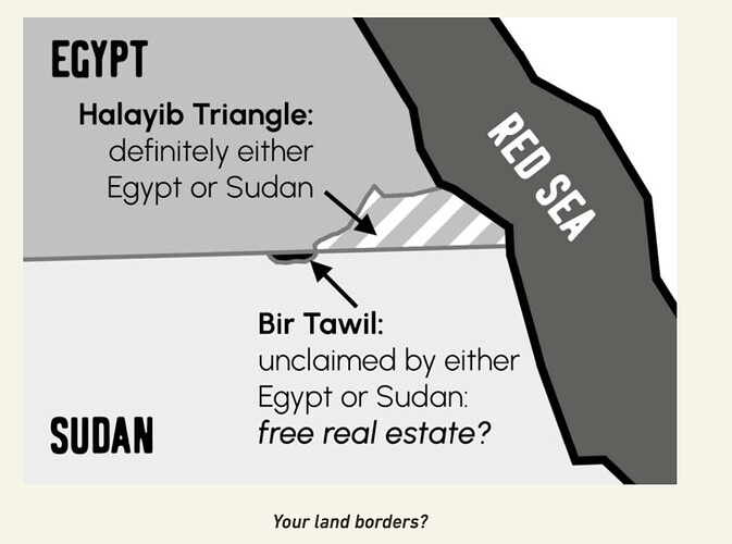Just because both Egypt and Sudan claim the other nation owns Bir Tawil, it certainly doesn’t mean that either is going to accept a third party waltzing in and claiming it, setting up a new country under their noses.